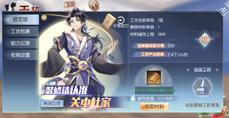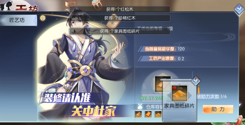 关中杜家装修铺开张啦,客官可以开启匠艺坊收集材料,打造心仪的家具。点击查看详情。