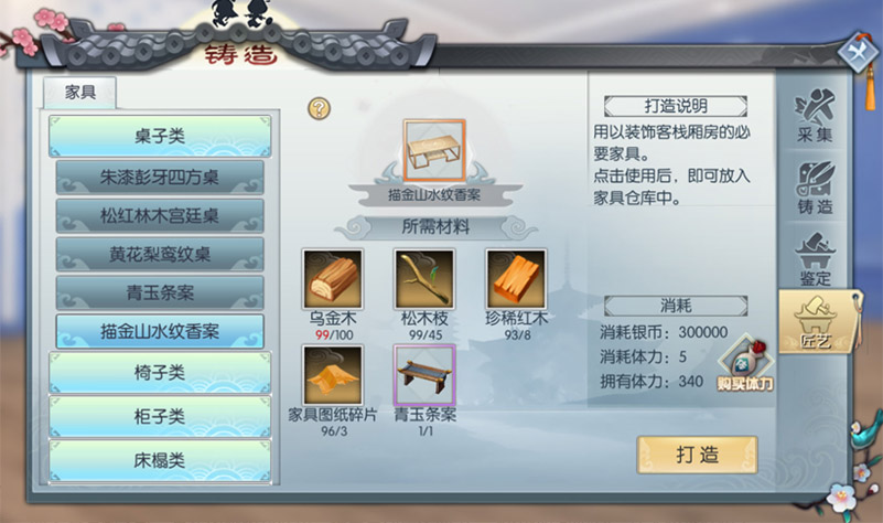 通过匠艺坊收集的材料、任务获得的图纸、旧家具分解的材料,可以DIY打造自己想要的家具。点击查看详情。